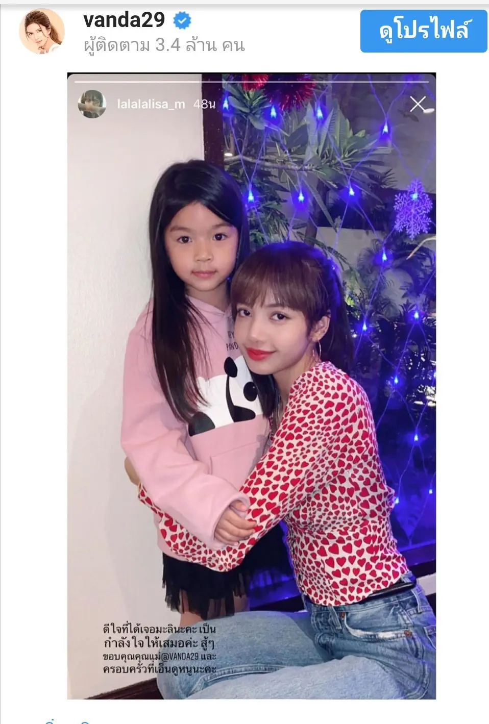 “ลิซ่า ลลิษา มโนบา” ไอดอลเกิร์ลกรุ๊ปชื่อดังเกาหลี โพสต์ไอจีสตอรี่เป็นรูปคู่ “น้องมะลิ พาขวัญ สหวงษ์” ลูกสาว “ปอ ทฤษฎี และโบว์ แวนด้า”