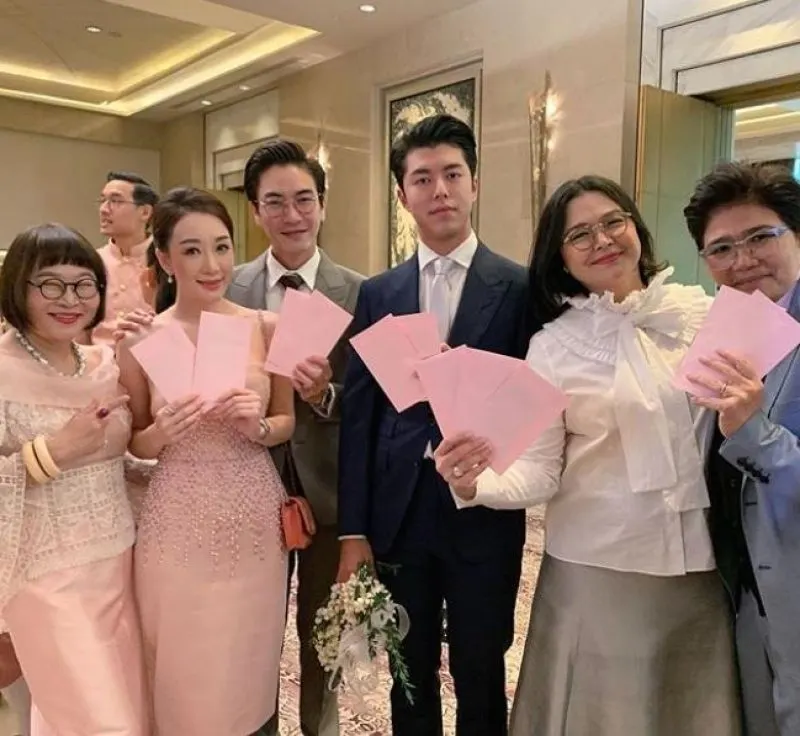 หลังจากนั้นทั้งคู่ก็ได้ทำการสวมแหวนแทนใจให้แก่กัน นอกจากนี้บอกเลยว่าสินสอดที่นำมาขอนั้นก็จัดเต็ม นอกจากนี้ยังมีคนในวงการมาร่วมความยินดี อาทิ ไก่ วรายุฑ สมรักษ์ ณรงค์วิชัย ปิ่น ณัฏฐนันท์ เชอร์รี่ เข็มอัปสร ฮาน่า ทัศนวลัย ยังก็ขอแสดงความยินดีกับทั้งคู่ด้วยจ้า