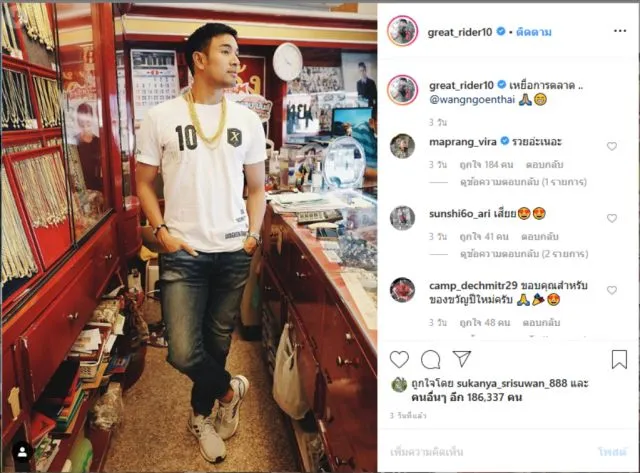 เรียกได้ว่าพระเอกหนุ่มสุดฮอตแห่งปีอีกหนึ่งคนเลยทีเดียวจ้า สำหรับพระเอกยิ้มหวานบ้านรวยคนนี้ เกรซ วรินทร ซึ่งหลายๆคนคงทราบกันดีว่าบ้านหนุ่มเกรซนั้นขายทองรูปพรรณอยู่ที่อำเภอหล่ม จังหวัดเพชรบรูณ์ ชื่อร้านห้างทองหวังเงินไทย เจ๊กุ้ง เรียกได้ว่าทำเอาลูกค้าแน่นร้านทุกวันเลยแหละจ้า ล่าสุดหนุ่มเกรซก็ได้มาโพสต์ผ่านอินสตาร์แกรมเป็นรูปที่สวมสร้อยทองเป็นสิบๆเส้น ทำเอาคนบันเทิงและบรรดาแฟนคลับต่างเข้ามาคอมเม้นท์กันเป็นแถวเลยทีเดียวจ้า