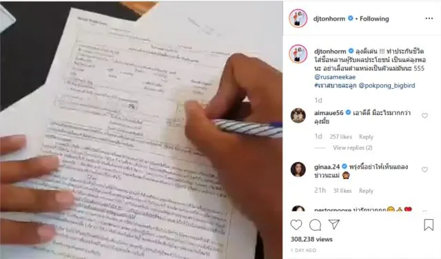 ล่าสุดทำเอาแฟนคลับตกใจไม่น้อย หลัง ต้นหอม โพสต์คลิป รัศมีแข ทำประกัน ขณะเซ็นใส่ชื่อน้องปกป้อง เป็นผู้รับผลประโยชน์ พร้อมระบุข้อความว่า ลุงดีเด่น ทำประกันชีวิตใส่ชื่อหลานผู้รับผลประโยชน์ เป็นแค่ลุงพอนะ อย่าเลื่อนตำแหน่งเป็นสมีแม่มันนะ 555