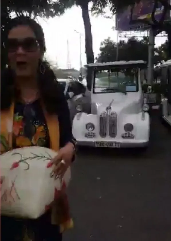 โดยที่พี่นางยังแต่งกายคล้ายสาวชาวเวียดนาม สีน้ำเงิน พร้อมทั้งแนะนำลูกทัวร์ในครั้งนี้ ที่นั่งรออยู่บนรถ งานนี้แฟนๆก็ไม่พลาดที่จะส่องเลขรถคันดังกล่าว