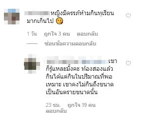 ซึ่งงานนี้ก็มีชาวเน็ตรายหนึ่งรีบโผล่เข้าไปคอมเมนต์เตือนเอาไว้ว่า หญิงมีครรภ์ห้ามกินทุเรียนมากเกินไป ซึ่งหลังจากนั้นก็ได้มีชาวเน็ตเข้ามาคอมเมนต์ต่อท้ายว่า เขาก็รู้แหละมั้งคะ ท้องสองแล้วกินได้แต่กินในปริมาณที่พอเหมาะ เขาคงไม่กินถึงขนาดเป็นอันตรายขนาดนั้น