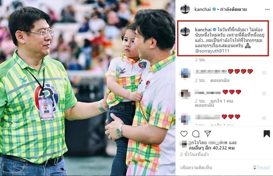 เเละล่าสุดทางด้าน รุ่นน้องอย่าง หนุ่ม กรรชัย นั้นก็ได้โพสต์รูปภาพลงบนอินสตราเเกรม ระบุข้อความว่า ในวันที่พี่กลับมา ไม่ต้องนับหนึ่งใหม่ครับ เพราะพี่คือที่หนึ่งอยู่แล้ว…ผมเป็นกำลังใจให้พี่ในทุกๆมุมและทุกๆเรื่องเสมอนะครับ
