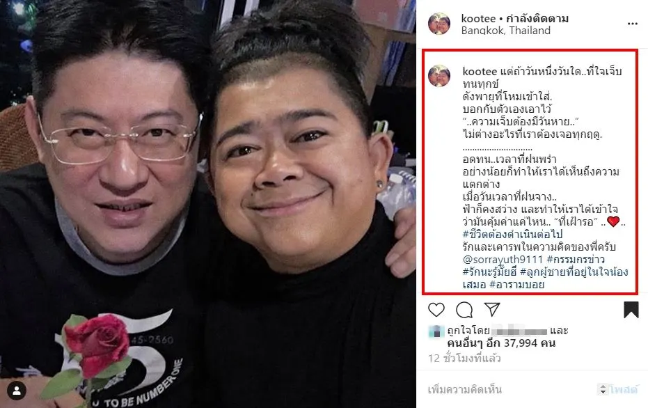 อีกทั้ง รุ่นน้องคนสนิทอย่าง โก๊ะตี๋ นั้นก็ได้เคลื่อนไหวกลางไอจี หลัง สรยุทธ นอนคุก ว่า แต่ถ้าวันหนึ่งวันใด..ที่ใจเจ็บทนทุกข์ ดังพายุที่โหมเข้าใส่.