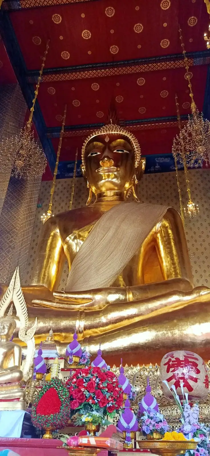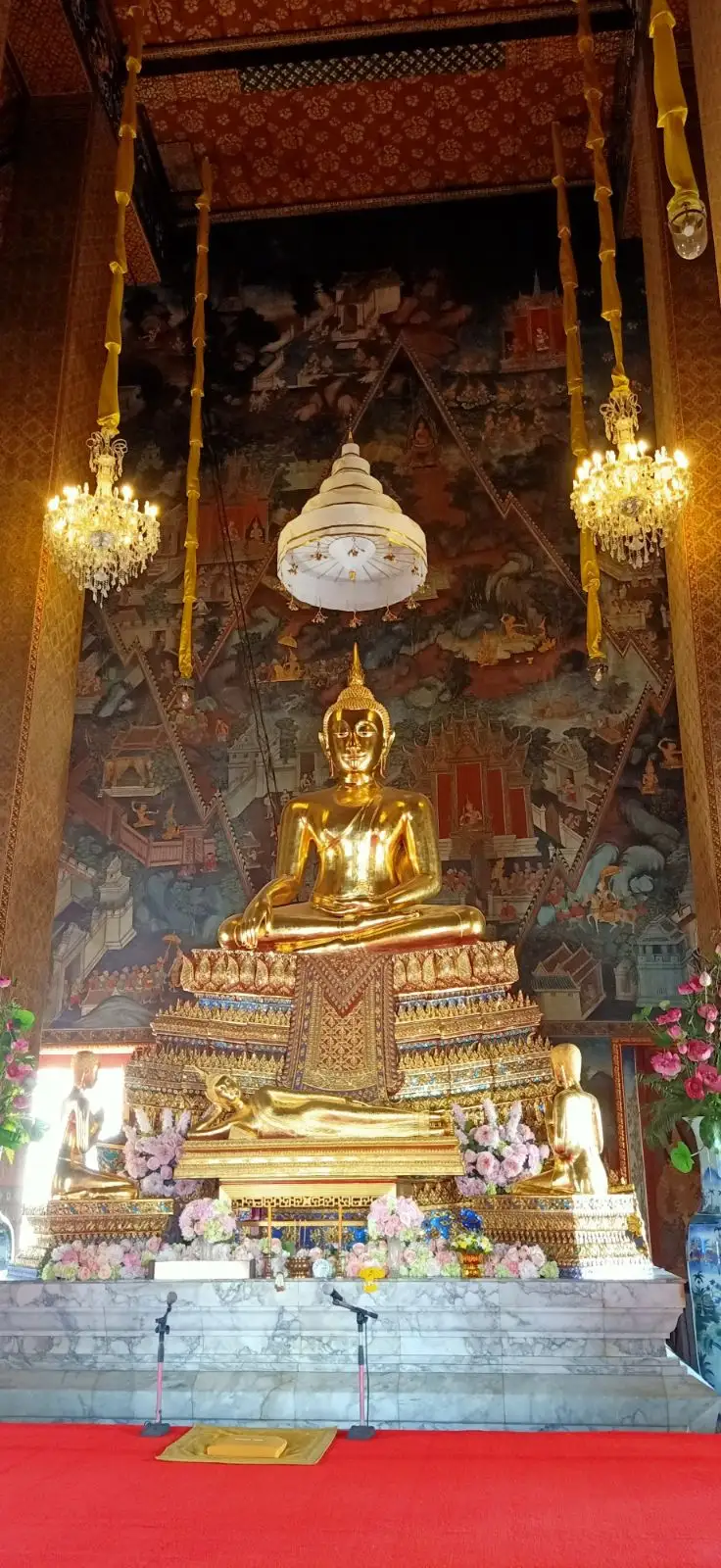 ทั้งลวดลายบนฝาผนัง ที่เข้ากันกับ พระพุทธรูป