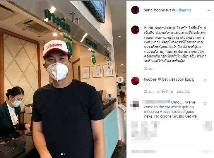 งานนี้แฟนคลับเข้ามาคอมเมนต์ให้กำลังใจเป็นจำนวนมาก ขอให้หนุ่มบุรินทร์หายจากอาการโดยเร็ว