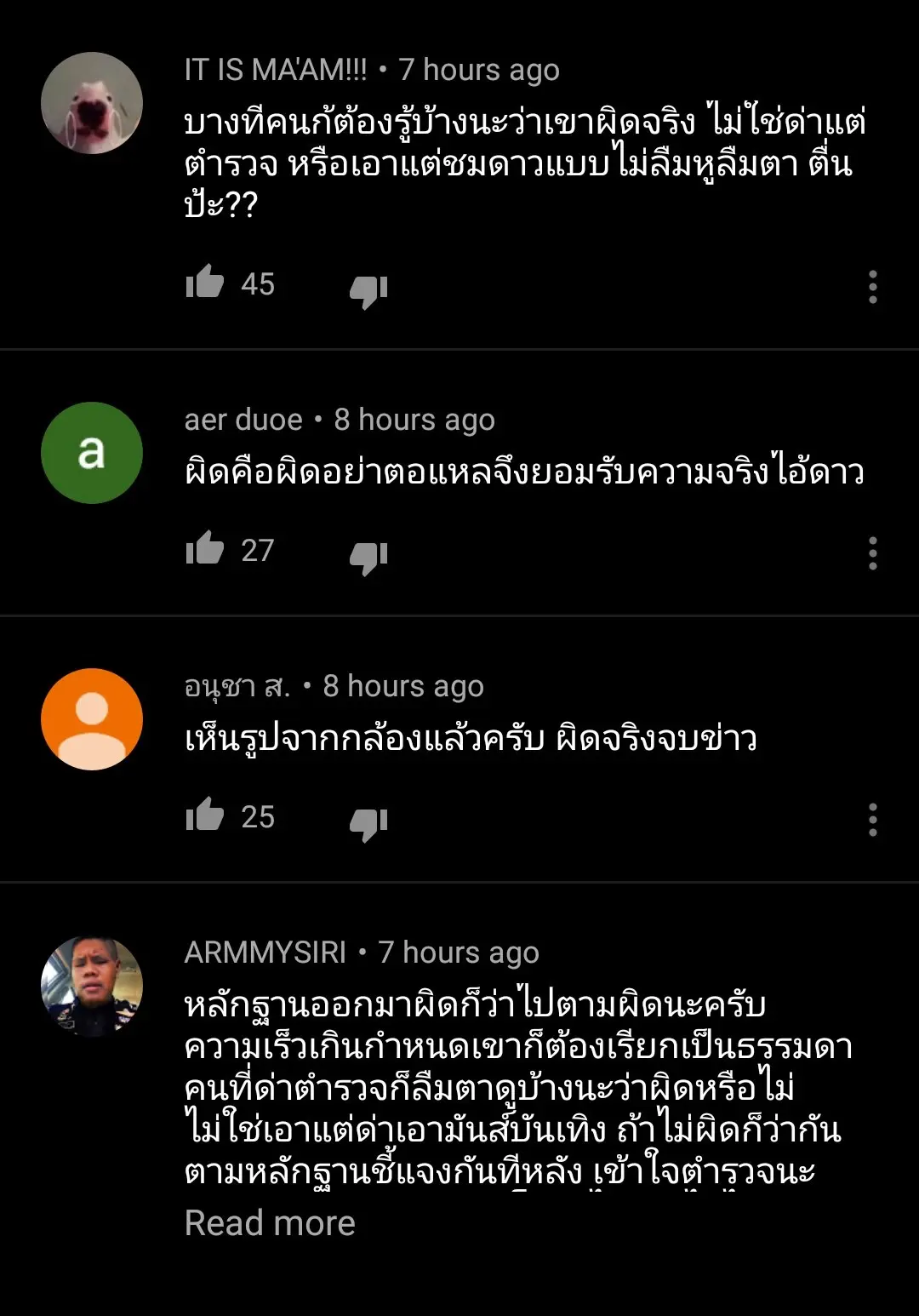 ด้านตำรวจได้อธิบายว่า รถคันอื่นไม่มีหลักฐานจากเครื่องจับความเร็ว แต่รถของดาวนั้นเครื่องจับความเร็วบันทึกไว้ได้ จึงต้องขอดูใบขับขี่ แต่ ดาว ยืนกรานไม่ยอมให้ความร่วมมือ จนทำให้เกิดการโต้เถียงกันอย่างดุเดือด แต่ภายหลังเจ้าตัวก็ได้ยอมให้เจ้าหน้าที่ดูใบขับขี่ และรับใบสั่งไป โดยเจ้าหน้าที่ดำเนินคดี 2 ข้อหา ฐานขับรถเร็วเกินกว่ากฎหมายกำหนด และไม่แสดงใบขับขี่ให้ตรวจสอบ.