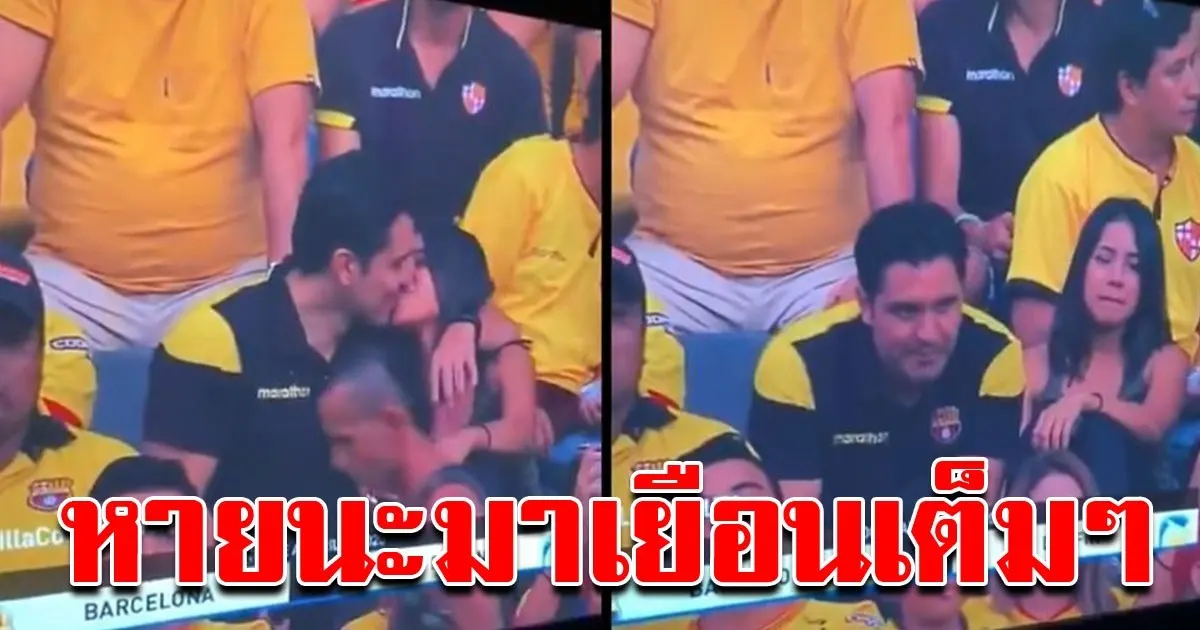 (คลิป)ซวยแล้ว!หนุ่มพาชู้ดูบอลกำลังจูบกันดูดดื่มก่อนจะรู้ว่าโดนกล้องจับอยู่ สุดท้ายเขาถึงกับต้องพูดแบบนี้!