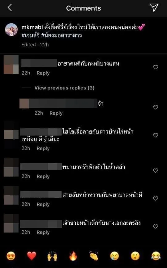 ซึ่งหลังจากโพสต์ดังกล่าวถูกเผยแพร่ลงในโลกออนไลน์ได้ไม่นาน ก็มีบรรดาเพื่อนของผู้โพสต์เข้ามาช่วยกันคิดชื่อซีรี่ย์เรื่องใหม่ให้กับเธอ โดยแต่ละชื่อถือว่าทั้งฮาและกวน ทำเอาหลายคนถึงกับสงสารนางเอกของเรื่อง(ผู้โพสต์)ไปตามๆกัน