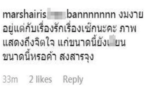 โดยข้อความดังกล่าวนั้นได้ระบุว่า งงงาย อยู่แต่กับเรื่องรักกับเซ็กนะคะ ภาพแสดงถึงจิตใจ แก่ขนาดนี้ยังเxยนหรอค้า สงสารจุง” เรียกว่างานนี้ก็ทำเอาแฟนคลับคนอื่นๆ เกิดความไม่พอใจกันอย่างมาก และหลายๆ คนก็ได้เข้ามาให้กำลังใจ มาช่ากันอย่างมากมาย