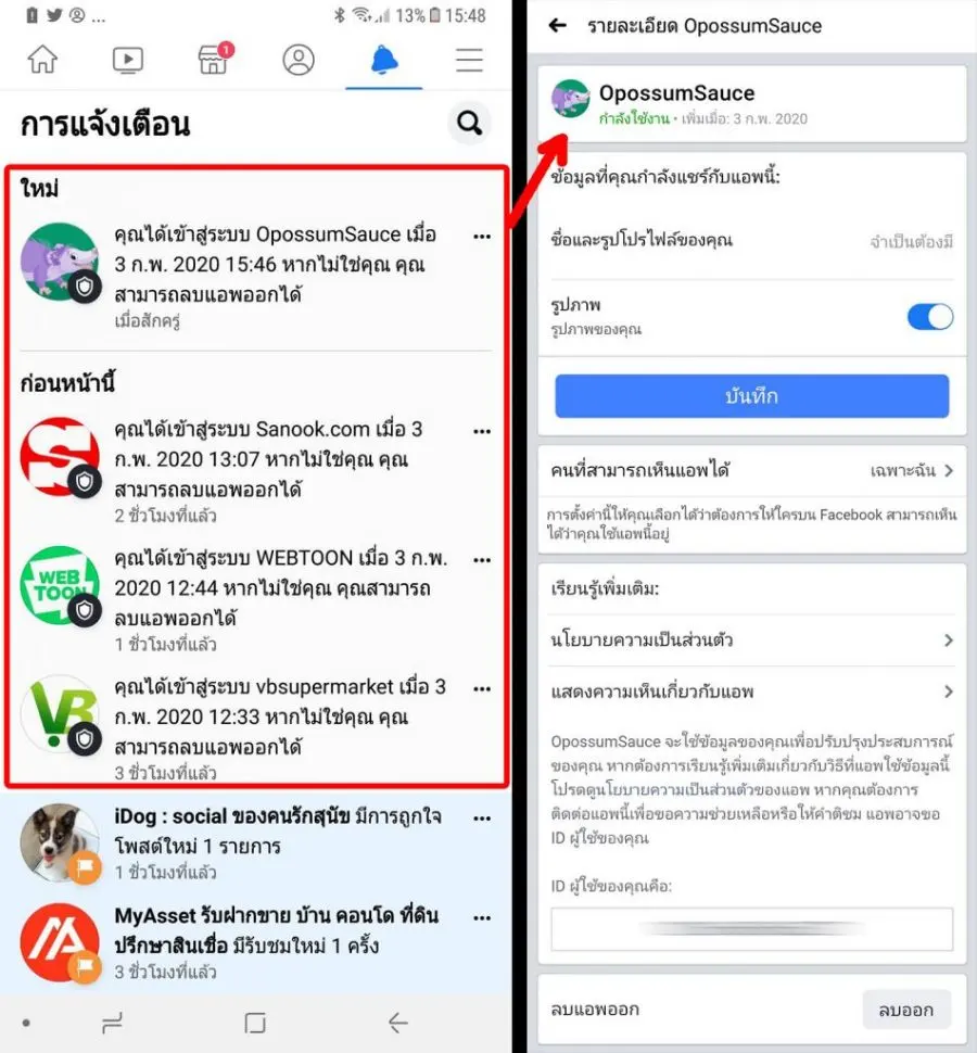 Facebook เพิ่มการแจ้งเตือน เมื่อผู้ใช้ login ด้วย facebook บนเว็บ หรือแอพอื่นๆ