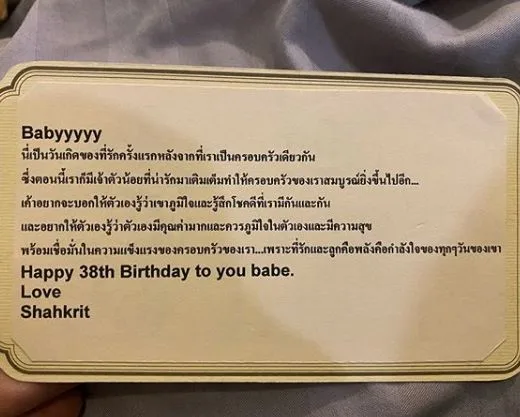 เเละเมื่อไม่นานมานี้ แม่แอน ภัททิรา นั้นก็ได้โพสต์รูปภาพลงบนอินสตราเเกรม ขณะที่เธอนั้นได้เผยของขวัญสุดล้ำค่า ที่สามี ชาคริต มอบให้ทั้งๆที่เขียนภาษาไทยไม่ได้!