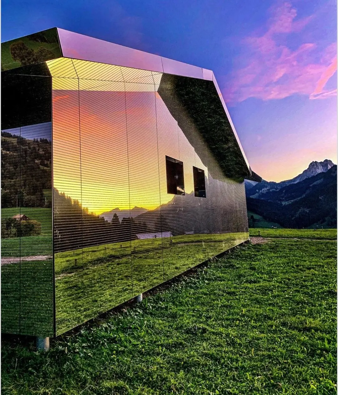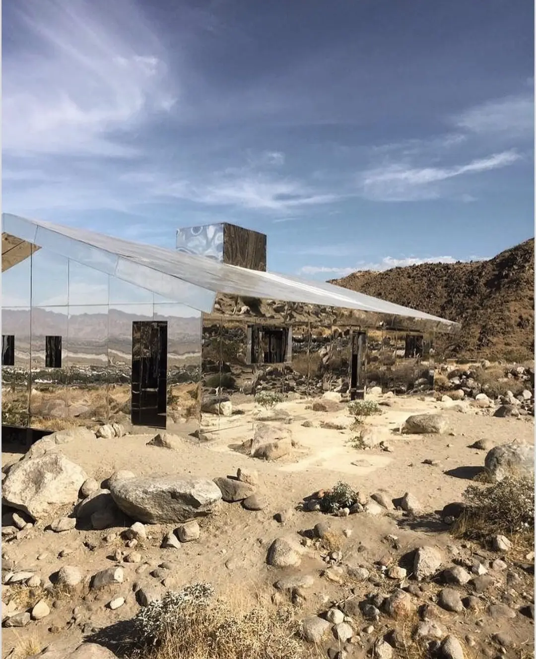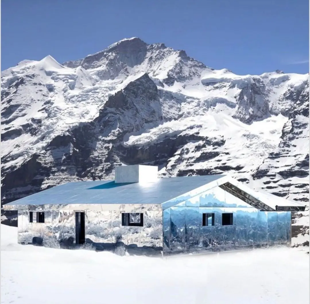 นักออกแบบ Doug Aitken สร้างบ้านมายากลมกัสจรรย์ ที่ทำจากกระจกทั้งหลัง. ทำให้มันดูกลมกลืนเข้ากับธรรมชาติ.