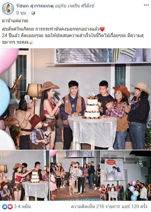 โดยงานนี้ สาวเจนนี่ ก็ได้โพสต์ระบุข้อความว่า มาช้าแต่มานะสุขสันต์วันเกิดนะ การกระทำมันคงบอกทุกอย่างแล้ว 24 ปีแล้ว คิดเยอะๆนะ ขอให้ประสบความสำเร็จในชีวิตไปเรื่อยๆนะ มีความสุขมากๆ นะคุณ