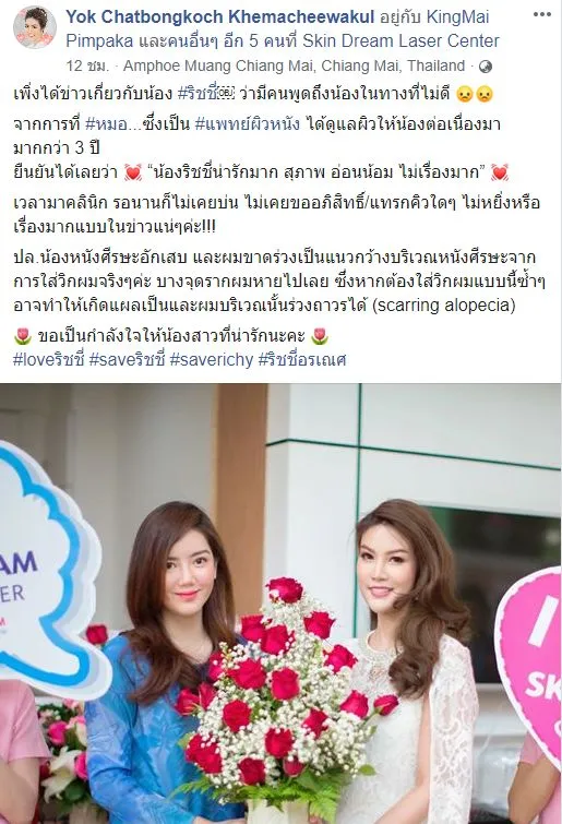 เวลามาคลินิก รอนานก็ไม่เคยบ่น ไม่เคยขออภิสิทธิ์/แทรกคิวใดๆ ไม่หยิ่งหรือเรื่องมากแบบในข่าวแน่ๆค่ะ!!! ปล.น้องหนังศีรษะอักเสบ และผมขาดร่วงเป็นแนวกว้างบริเวณหนังศีรษะจากการใส่วิกผมจริงๆค่ะ บางจุดรากผมหายไปเลยซึ่งหากต้องใส่วิกผมแบบนี้ซ้ำๆ อาจทำให้เกิดแผลเป็นและผมบริเวณนั้นร่วงถาวรได้ (scarring alopecia) ขอเป็นกำลังใจให้น้องสาวที่น่ารักนะคะ #loveริชชี่ #saveริชชี่ #saverichy #ริชชี่อรเณศ