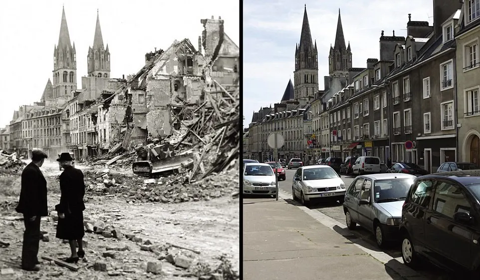5.ถนนแห่งการเปลี่ยนแปลง: รถถังฝรั่งเศสได้รับการต้อนรับอย่างอบอุ่นผ่าน Sainte Mere Eglise - วันนี้อาคารระเบิดเป็นร้านขายเสื้อผ้า