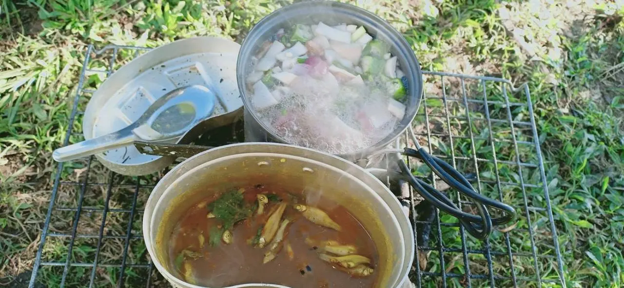 ระดับเสาวนิจแล้ว ไม่ทำกับข้าวไม่ได้แล้ว แกงลูกปลากันบนยอดเขา ต้มผักร้อนๆฟินเฟ่อ