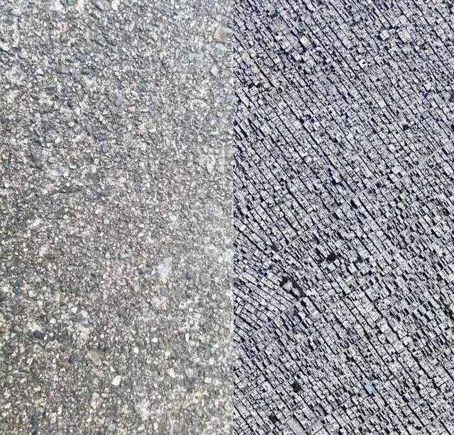 #2 ด้านซ้ายคือภาพแบบใกล้ๆ ของพื้นคอนกรีต ส่วนภาพทางด้านขวาคือกรุงนิวเดลี ประเทศอินเดีย