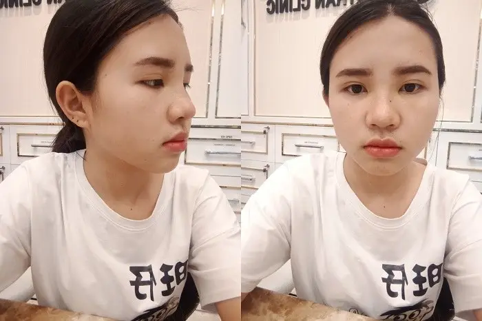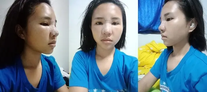 หมอก็จะนัดดูอาการค่ะ แต่ไม่ได้ตัดไหมนะคะเพราะหมอใช้ไหมละลาย แล้วเราก็ต้องทำความสะอาดแผลด้วยการใช้สำลีก้านชุบน้ำอุ่นเช็ดแผล ตอนนั้นรู้สึกเหมือนคันๆๆเหมือนมีน้ำอะไรไหล กลัวจมูกเน่ามาก แต่คิดว่าเป็นการละลายของไหมค่ะ เพราะตอนไปเช็คอาการกับหมอก็ไม่ได้มีความผิดปกติอะไร พอเวลาผ่านไปจมูกยิ่งรัดแกนยิ่งเห็นทรงชัดขึ้นแต่ตรงปลายๆๆก็ยังตึงๆอยู่เพราะจากเดิมเป็นคนที่เนื้อน้อยเลยรู้สึกเหมือนมีอะไรมาดันอยู่ตรงปลายจมูกทำให้รู้สึกตึงๆแต่ก็ไม่ได้รู้สึกเจ็บปวดอะไร