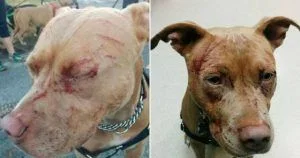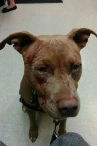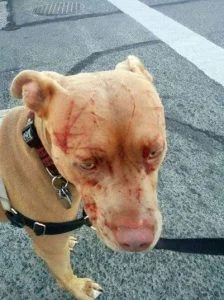Bandida สุนัขพิทบูลเพศเมียวัย 3 ปี ได้รับบาดเจ็บจากแมวข่วน