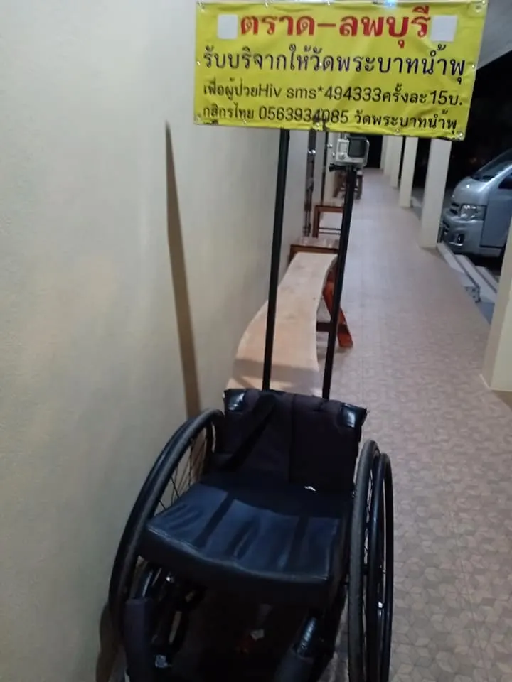 ..เป้าหมายของแกปั่นวีลแชร์ จาก จ.ตราด-จ.ลพบุรี เพื่อวัดพระบาทน้ำพุ วันนี้ แดดร้อนจัดแกมีอาการ เป็นลมแดด หน้ามืด ผมมาถึงเอาเงินให้ ไว้ใช้ส่วนตัว พี่หมีไม่รับเลย แกบอกว่า ใครให้ส่วนตัว จะทำบุญหมดเลย เพราะแกมีงบส่วนตัวเตรียมมาใช้จ่ายอยู่แล้ว และตั้งใจทำด้วยใจ จากใจจริงๆ