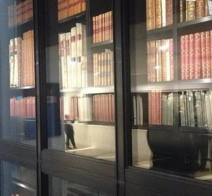 11. คนตัวจิ๋วที่กำลังหยิบหนังสือเล่มยักษ์ในห้องสมุด