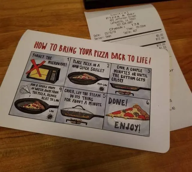 14 ร้านพิซซ่าแห่งนี้ให้คำแนะนำเกี่ยวกับวิธีการอุ่นพิซซ่าด้วยใบเสร็จ