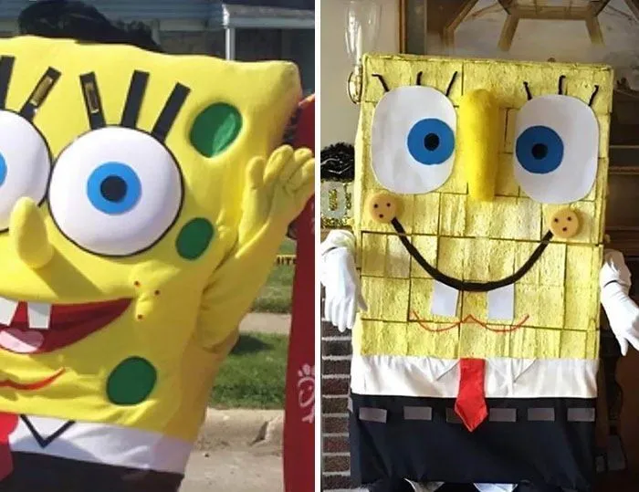 14. ครอบครัวหนึ่งได้จ้าง “สปอนจ์บ็อบ” มาโชว์ในงานวันเกิด ด้านซ้ายคือภาพโฆษณา ด้านขวาคือของจริงที่มาในงาน