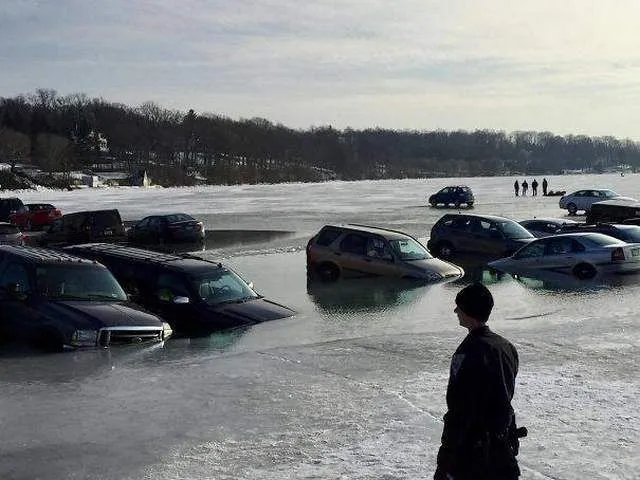 เมื่อหาที่จอดไม่ได้ เลยมาจอดไว้บนแผ่นน้ำแข็ง แล้วน้ำแข็งก็ละลาย