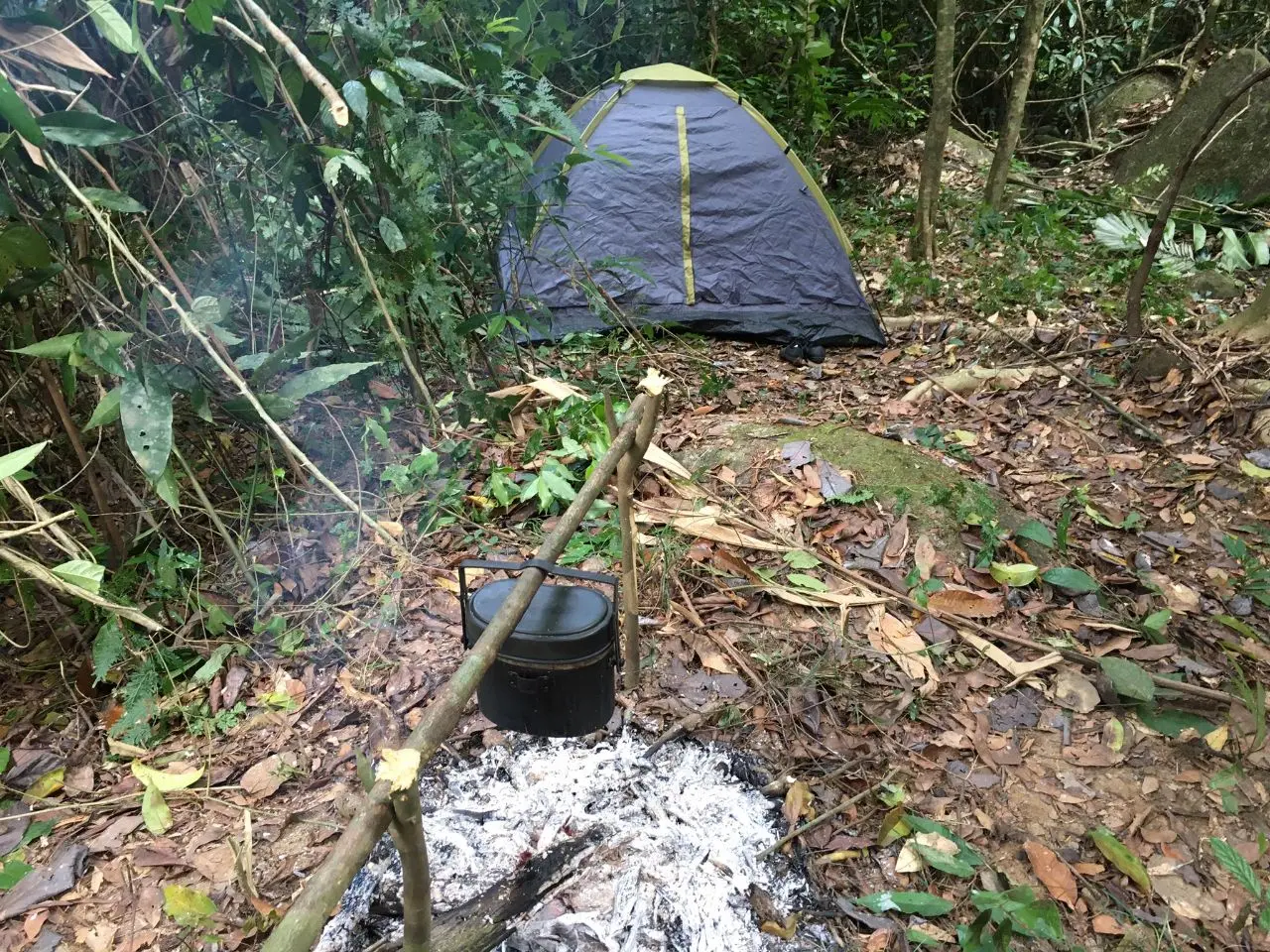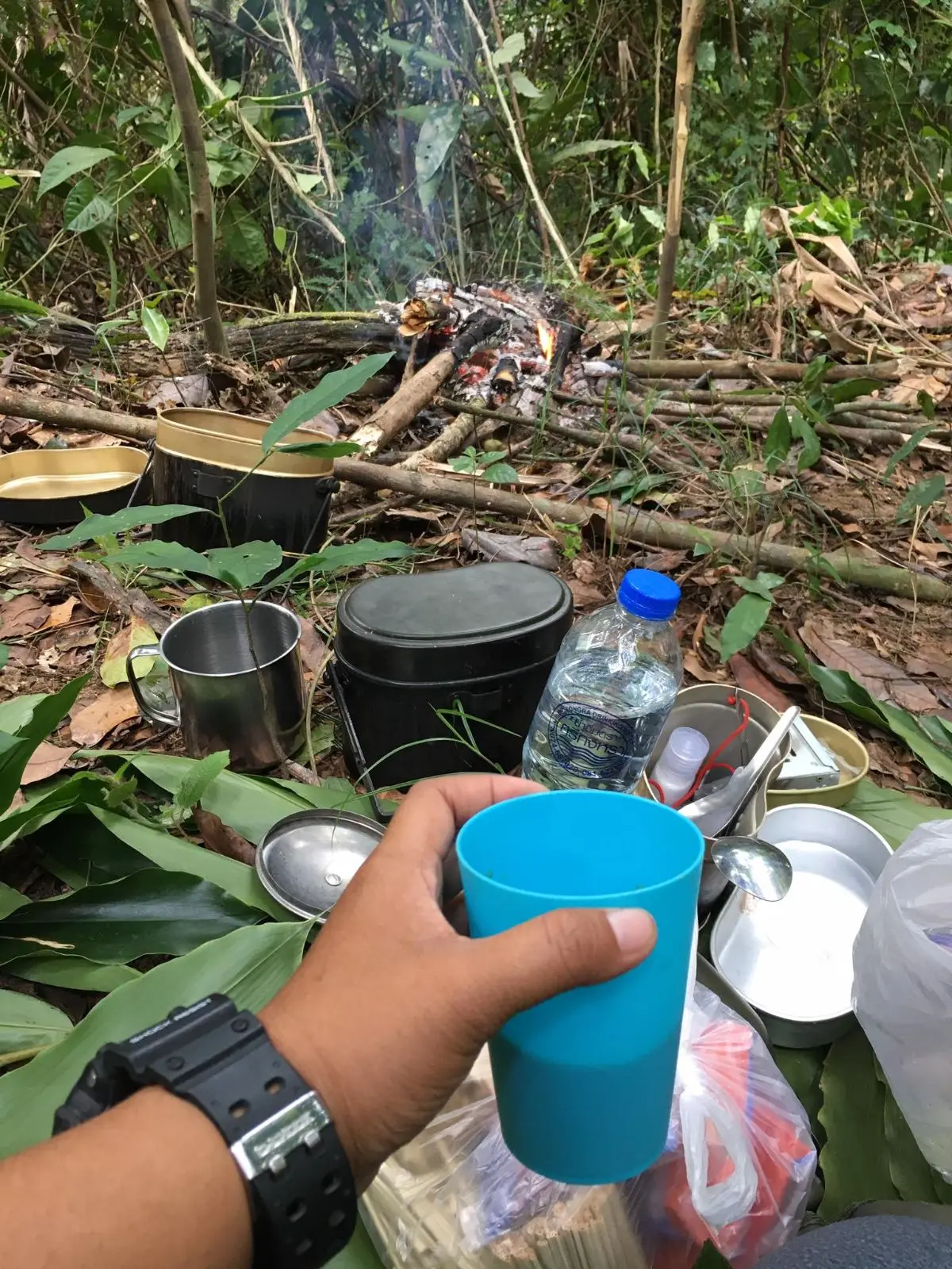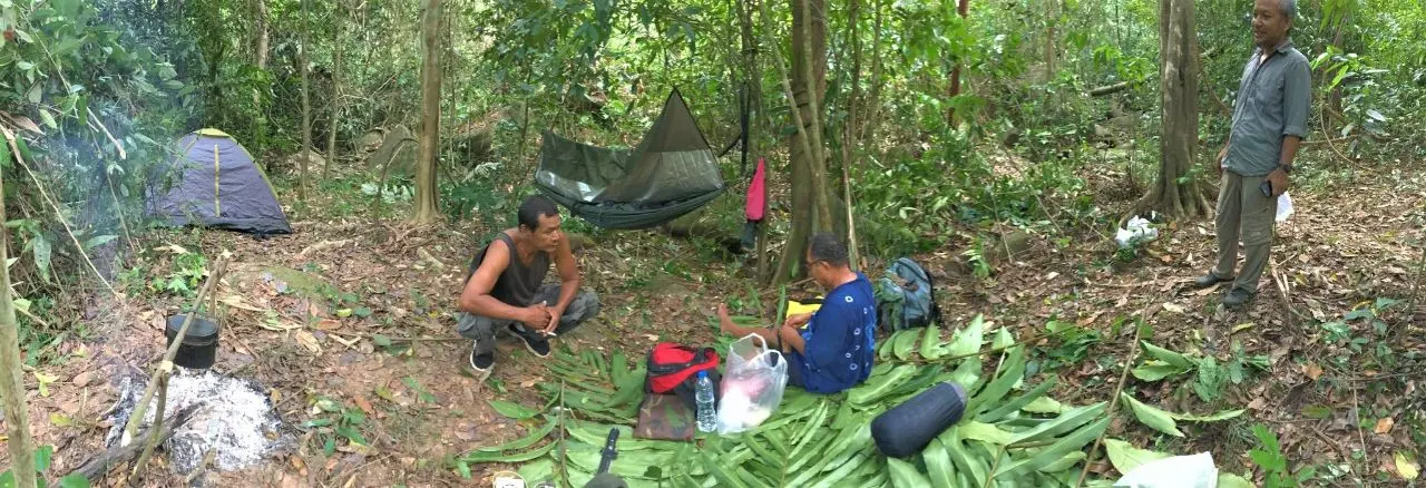เมื่อเดินมาถึงก็จัดแจงที่พักเสบียงอาหารก็จัดเตรียมมาจากที่บ้านทั้งข้าวสารอาหารกึ่งสำเร็จรูปเพรียบพร้อมสำหรับ 2 คืน 3 วันของการนอนป่าเพื่อศึกษาธรรมชาติของชาวมันนิ