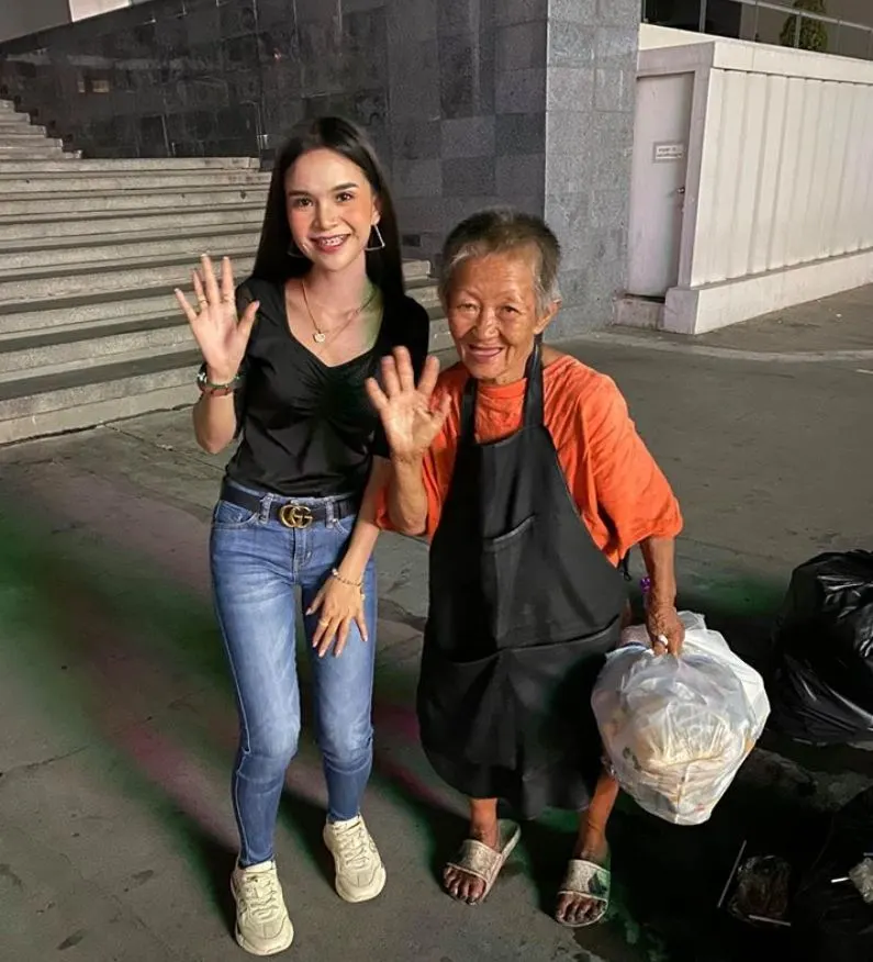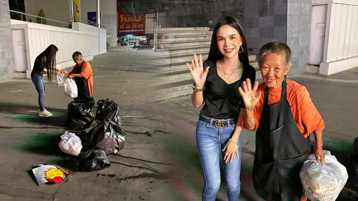 อาม ชุติมา มอบอาหาร แบ่งปันความสุข หลังบังเอิญเจอคุณยายกำลังเก็บขยะกลางดึก