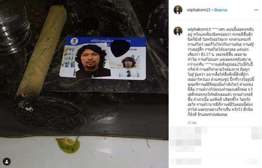 ” เสก..ตอนนี้เธอคงหลับอยู่ หวังแค่เพียงนิดหน่อยว่า คงจะดีขึ้นสักนิดก็ยังดี ไม่หวังอะไรมาก ทุกตำแหน่งที่กานต์ไหว้ เธอก็ไปไหว้กับกานต์นะ กานต์รู้ว่าเธอรู้สึก กานต์ไม่ได้บอกเธอ แค่บอกเพียงว่า ตี3.37 น. เธอจะดีขึ้น เธอถามทำไม กานต์ไม่บอก แต่เธอคงหลับสบายกว่าทุกคืน ****กานต์เห็นรูปเธอ2ใบนี้กับปิ๊กกีต้าร์ กานต์ก็ทำตามใจต้องการ ผิดถูกไม่รู้ รู้แค่ว่า อยากสื่อให้สิ่งศักดิ์สิทธิ์รู้ว่า เธอมาไหว้เอง ตำแหน่งรูป ปิ๊กที่วางในรูปนี้ ขณะที่กานต์มีจิตมุ่งมั่นกำลังไหว้ ตำแหน่งนี้คือ กานต์วางไว้ตรงเท้าของเสด็จพ่อ ร.5 เสด็จพ่อทรงให้พลังเธอแล้ว ทุกอย่างจะดีขึ้น ถ้าเราเชื่อ แค่คิดดี บริสุทธิ์ใจ ไม่หวังอะไร กานต์ว่าบารมีที่กานต์มีในตอนนี้ต้องทำได้ และทุกอย่างก็ราบรื่น หวังไว้ สักนิดก็ยังดี รักและห่วงเสมอนะ”