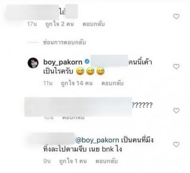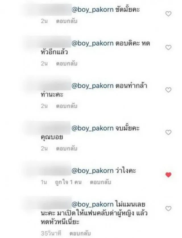 ล่าสุดหนุ่มบอยก็ได้เกิดมีงานเข้าแล้ว เมื่อหนุ่มบอยได้ลงรูปของครอบครัวในไอจีล่าสุด ก็ได้มีสาวคนหนึ่งมาคอมเม้นแฉหนุ่มบอย อย่างรัวๆ