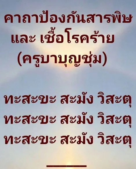 มาสวดคาถานี้กันดีไหมคะ ให้จิตมีที่เกาะ จิตจะได้เป็นสมาธิ ไม่ฟุ้งซ่าน ไม่ซัดส่าย ไม่หวาดกลัว จิตที่เข้มแข็ง ก็เป็นส่วนสำคัญที่จะช่วยให้ร่างกายของเราเแข็งแรงนะคะก่อนที่ ครูบาบุญชุ่ม จะเข้าถ้ำ 1 ปีมาแล้ว ท่านบอกว่า ให้สวดคาถานี้ เพื่อป้องกันเชื้อโรค ท่านมองเห็นล่วงหน้าแล้ว ตั้งแต่ วันที่ 9 เดือนกันยายน 2562 อันนี้เป็นข้อมูลที่ได้เรียนถามพระอาจารย์ท่านหนึ่งมาเกี่ยวกับคาถาบทนี้ค่ะ ถ้าเป็น คาถา ลักษณะแบบนี้ ส่วนใหญ่จะหารากศัพท์ แปลความหมายได้ยากซึ่งคาถาแบบข้างต้น เรียกว่า เป็นมนต์ถาคา “ความศักดิ์สิทธิ์ อยู่ที่จิตศรัทธา” ส่วนถ้าเป็นคาถาของพระพุทธเจ้า “ความศักดิ์สิทธิ์ อยู่ที่การนำ ไปปฏิบัติ” สุขสันต์วันพระนะคะเพื่อนๆ” เอาเป็นว่าถือเป็นอีกหนึ่งคาถาให้จิตใจเข้มแข็งตั้งรับทุกสถานการณ์แล้วกันจ้า