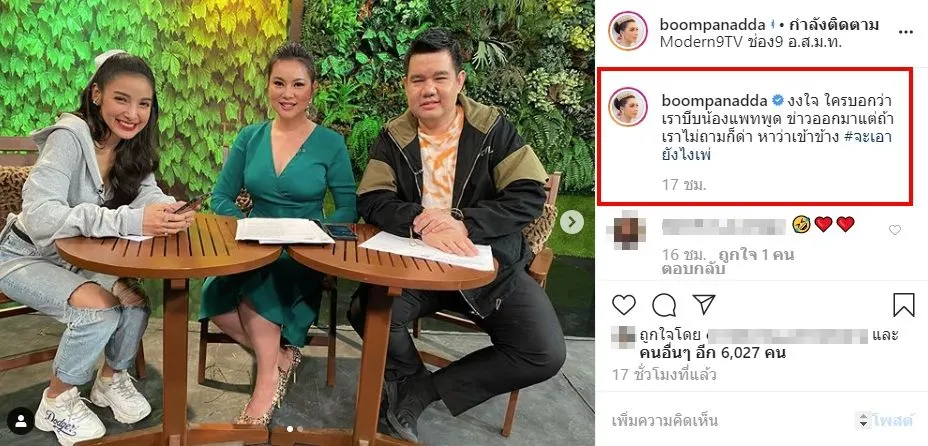 เเละงานนี้ก็ดูเหมือนเรื่องราวชักบานปลาย เมื่อชาวเน็ตต่างหาว่าต้นตอของดราม่าทั้งหมด เป็นเพราะ สาวบุ๋ม ปนัดดา บังคับให้ แพท ณปภา พูดยอมรับสถานะกับหนุ่มคนใหม่ โดยงานนี้ บุ๋ม ปนัดดา ก็ถึงกับของขึ้นกลางไอจี ได้โพสต์รูปภาพ พร้อมเเคปชั่นว่า