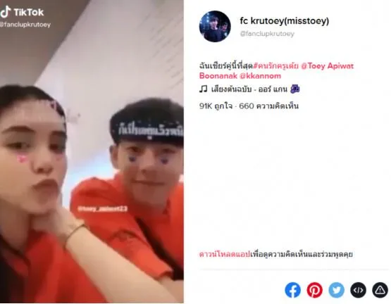 แต่นอกจากคลิปของครูเต้ยแล้ว ยังมีอีกหนึ่งคลิปที่ทำเอาแฟนๆ ต่างพากันเขินแทน นั่นก็คือ คลิปคู่สุด น่ารัก ของครูเต้ย กับสาวคนหนึ่ง ซึ่งแฟนๆ ต่างคาดว่า น่าจะเป็น หวานใจของครูเต้ย งานนี้ คงต้องรอทางเจ้าตัวออกมาพูดให้ชัดอีกทีจ้า