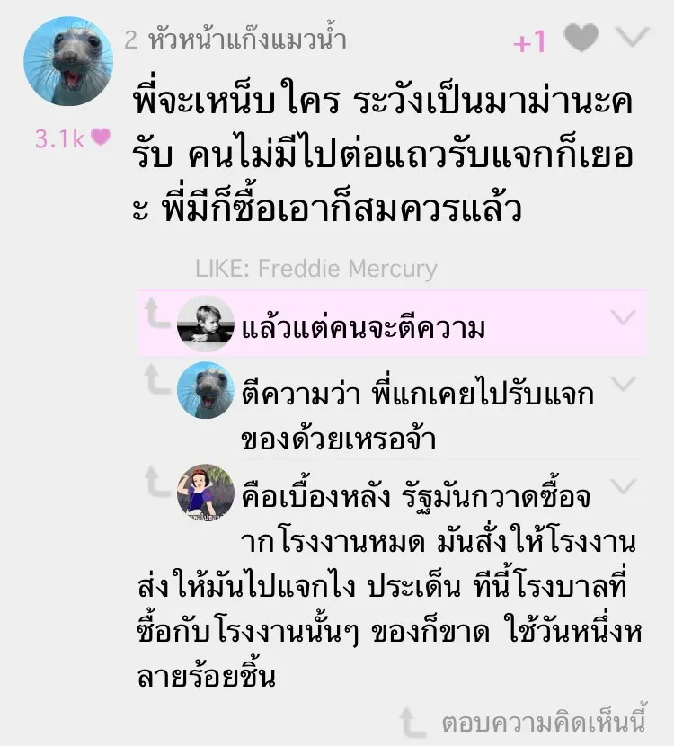 ต่อมาทำให้เกิดคำถามจากชาวเน็ตว่า ดีเจคนดังกล่าวโพสต์แบบนั้นเพื่ออะไร เพราะคิดว่าเธอคงไม่ต่อแถวเพื่อรับของแจกอยู่แล้ว และมีบางส่วนแสดงความเห็นว่าการโพสต์แบบนี้คือการกดดันคนอื่นๆ