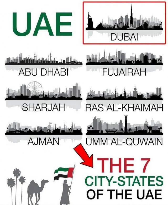 ดูไบเป็นแค่เมืองๆ หนึ่งในประเทศ สหรัฐอาหรับเอมิเรตส์ ที่มีชื่อย่อว่า UAE เท่านั้น แถมดูไบยังไม่ใช่เมืองหลวงอีกด้วย ดูไบเป็นเพียงแค่ 1 ใน 7 รัฐของสหรัฐอาหรับเอมิเรตส์ ส่วนเมืองหลวงของที่นี่ก็คือ อาบูดาบี