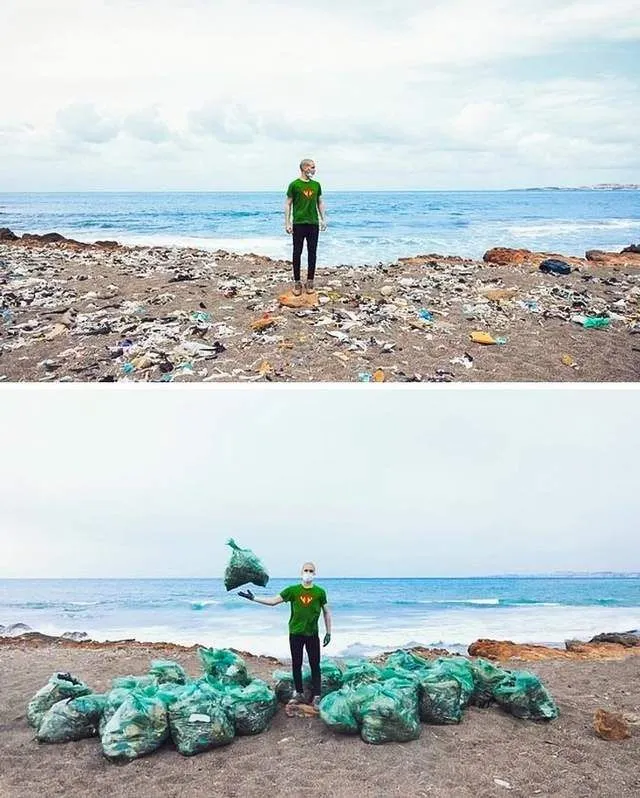 #1 ภาพของชายหาดก่อน และหลังทำความสะอาด โดยชายคนหนึ่งที่อยากเปลี่ยนแปลงโลก