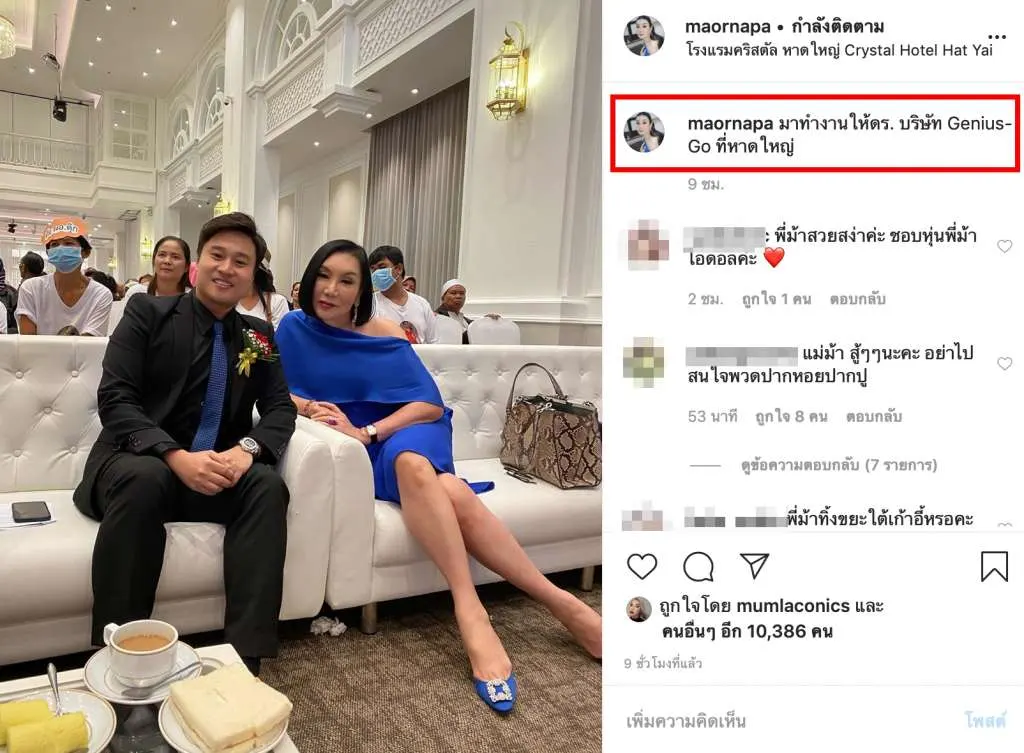 จากนั้นทางด้าน “ม้า อรนภา” ได้ลบภาพดังกล่าวออกจากอินสตาแกรมส่วนตัว ด้วยต้านท้านกระแสวิพากวิจารณ์ไม่ไหว และได้อัพภาพที่ไปร่วมงานแทน พร้อมข้อความระบุว่า “มาทำงานให้ดร. บริษัท Genius-Go ที่หาดใหญ่” ซึ่งต่างมีชาวเน็ตที่ให้กำลังใจ แต่บางคนก็ยังคงเข้ามาคอมเม้นต์วิพากวิจารณ์เหน็บแหนมไม่จบไม่สิ้น
