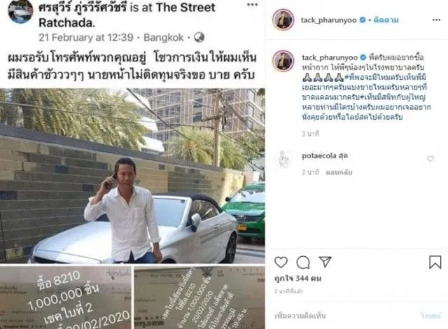 ล่าสุดวันนี้ แทค ภรัณยู โรจนวุฒิธรรม ได้โพสต์อินสตาแกรมส่วนตัว เป็นภาพแมสที่แคปมาจาก นายศรสุวีร์ ภู่รวีรัศวัชรี พ่อค้าที่ประกาศขายแมส โดยระบุว่า พี่ครับผมอยากซื้อแมสให้พี่ๆน้องๆ ในโรงบาลครับ พี่พอจะมีไหมครับ เห็นพี่มีเยอะมากๆครับ แบ่งขายไหมครับหลายๆ ที่ขาดแคลนมากครับ เห็นมีสนิทกับผู้ใหญ่หลายท่าน มีใครบ้างครับผมอยากเจอ อยากนั่งคุยด้วยหรือไลฟ์สดไปด้วยครับ