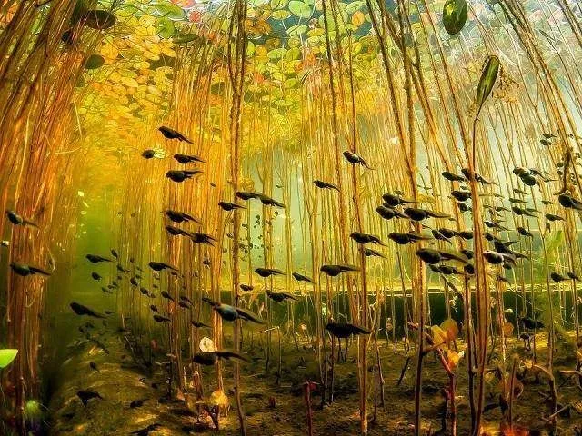 #4 ฝูงลูกอ๊อด (Tadpole) กำลังแหวกว่ายผ่านบึงน้ำที่ใสสะอาด