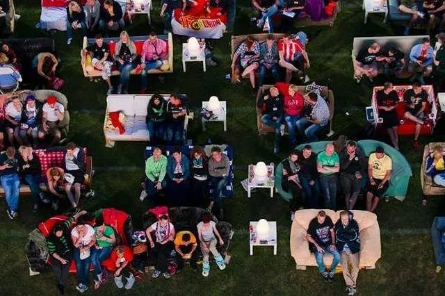#5 นี่คือภาพถ่ายระหว่างฟุตบอล World Cup ตอนปี 2014 โดยในสนามกีฬา Berlins Alten Forsterei ได้กลายเป็นที่รวมผู้คนจำนวนมหาศาล ที่พร้อมใจกันขนโต๊ะอาหาร หรือโซฟามาตั้งเพื่อรับชมฟุตบอลเพื่อเชียร์ทีมที่ตนรัก
