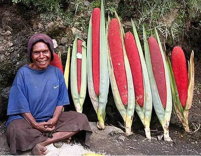 ถิ่นกำเนิดปาปัวนิวกินี เป็นพืชตระกูลเดียวกับเตยหอม สูงถึง 16 เมตร ผลเรดฟุ้ทขนาดโตเต็มที่ ยาว 55 ซม. ขนาดเส้นผ่าศูนย์กลาง 10-15 ซม. น้ำหนัก 2-3 กิโลกรัม ผลสุกมีสีแดงสด ชนพื้นเมืองใช้กินกับอาหารอาหารปิ้งย่าง และยังใช้เป็นยารักษาโรค