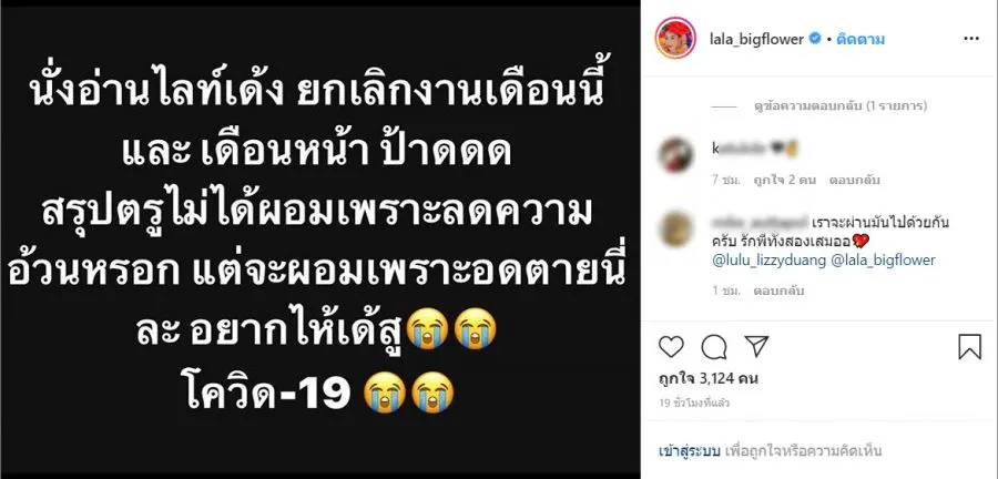 ล่าสุด สาวลาล่า อาร์สยาม นั้นก็ได้เผชิญโชคชะตาที่นับว่าเเเย่ที่สุด หลังโดนยกเลิกงานจ้าง นานถึง 2 เดือน เพราะcovid ซึ่งงานนี้ ลาล่า อาร์สยาม ปล่อยโฮ หลังเพื่อนสนิท ลูลู่ ถามเพียงว่ามีเงินใช้ไหม