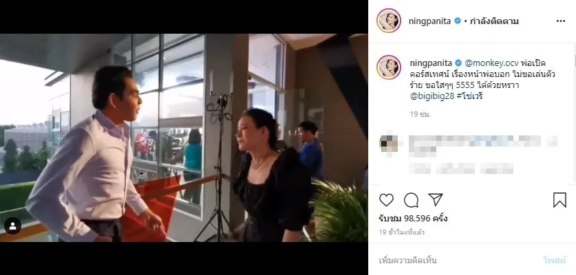 จิน โผล่คอมเมนต์กลางไอจีเมีย หนิง ปณิตา หลังโพสต์คลิปคู่อดีตแฟนเก่า บิ๊ก ศรุต