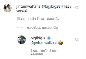 ซึ่งงานนี้ทางด้านสามีอย่าง จิน จรินทร์ ยังได้ออกเข้ามาคอมเมนต์กลางอินสตาแกรมของ สาวหนิง เอาไว้ว่า สาธุฮะหลวงพี่ ด้าน หนุ่มบิ๊ก เองก็ได้เข้ามาตอบกลับเป็นรูปอิโมติคอนยิ้มนั่นเอง ซึ่งก็ต้องบอกเลยว่าอดีตจะเป็นอย่างไรแต่ปัจจุบันทั้ง2ฝ่ายนั้นยังคงเป็นเพื่อนที่ดีต่อกัน