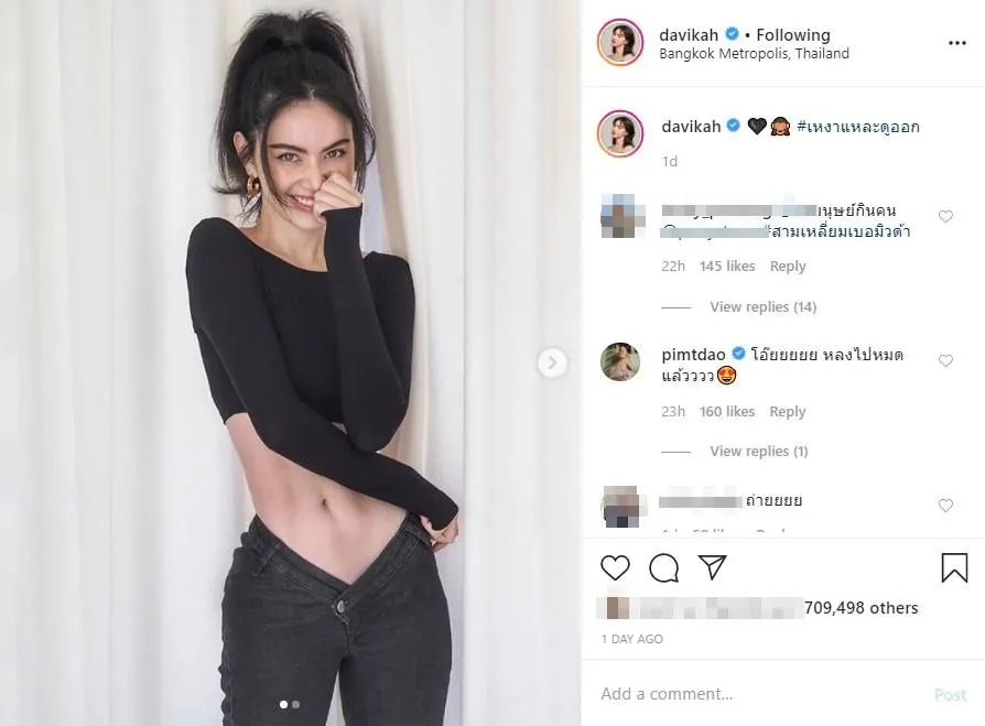 ล่าสุด ใหม่ ดาวิกา ได้โพสต์อัปเดทหุ่นล่าสุด ที่ผอมมากๆ เอวเหลือนิดเดียว โดยโพสต์ระบุเเคปชั่นว่า … #เหงาแหละดูออก