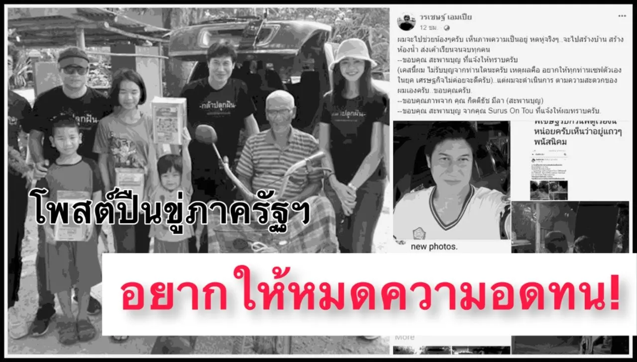 "ผมทิ้งมันแล้ว เมื่อหลายสิบปี และสัญญากับตัวเองว่า จะไม่จับมันอีก..แต่ถ้าหากว่า โดนรังแกจากหน่วยงานภาครัฐ ที่เราไม่มีทางสู้จริงๆ สุดท้ายก็ต้องจบกันแบบนี้ครับ..ลาก่อนครับผม..ขอให้ทุกหน่วยงานภาครัฐ เจริญๆยิ่งขึ้นครับ..สาธุครับ พร้อมตาย..ไอ้เชษฐ์..ผมแค่ไปสร้างบ้านให้เด็กน้อยผู้อาพับ มันเหมือนเป็นคนผิดเหรอครับ เหมือนข้ามหน้าข้ามตาเค้าเหรอครับ ทำไม ไม่คิดสามัคคีกันล่ะ แล้วแต่ก่อน ก็ไม่ไปทำกันล่ะ ก่อนที่ผมจะเข้าไปช่วย พอมีกระแสสังคม จึงเข้ามา..คนอย่างผม ไม่เล่นการเมืองอยู่แล้วครับ..ไม่ยุ่งแย่งตำแหน่งใครหรอกนะครับ"