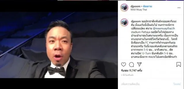 จากสถานการณ์ COVID ที่ประเทศไทยกำลังเผชิญอยู่ในปัจจุบัน ทำให้หลายๆส่วนต่างได้รับผลกระทบกันถ้วนหน้า ล่าสุด ลามมาถึงวงการมวยไทยแล้ว ที่ทางสนามมวยต้องปิดสนามไม่ให้ผู้ชมเข้ามา เพราะเกรงว่าจะเป็นแหล่งสะสมของ COVID แต่รายการมวยยังคงถ่ายทอดสดเหมือนเดิม โดยทาง ดีเจภูมิ ได้โพสต์คลิปและระบุข้อความผ่านไอจีส่วนตัว djpoom ใจความว่า